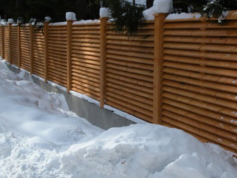 Дерево — уникальный материал в руках мастеров. Благодаря своей мягкости, простоте в обработке, а также красивой структуре материала, компоновка различных элементов из дерева позволяет получать не только простые заборы с вертикальным или горизонтальным размещением досок, но и более сложные в объемном плане сооружения. На смену традиционному штакетнику пришли двусторонние заборы. Деревянные заборы такой конструкции совмещают в себе способность оградить ваш участок от пристального внимания посторонних и не перекрывать путь движущимся массам воздуха. Эта немаловажная деталь значительно снижает парусность забора, что способствует уменьшению значения боковой нагрузки на его конструкцию. Кроме того, такой деревянный забор имеет одинаковый внешний вид и со стороны улицы, и со стороны вашего двора.